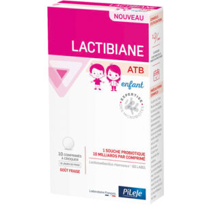 Développé pour les enfants dès 3 ans, ce complément alimentaire est composé d’une souche probiotique Lacticaseibacillus rhamnosus GG LA801, dosée à 10 milliards par comprimé à croquer. Goût fraise.