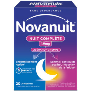 Spécialiste du sommeil, Novanuit enrichit son offre avec Nuit Complète, un complément alimentaire qui associe mélatonine, dosée à 1,9 mg, mélisse, pavot de Californie et vitamine B6. Le tout dans un pelliculage qui permet une libération des actifs en deux temps, pour agir sur le temps d’endormissement et les réveils nocturnes.