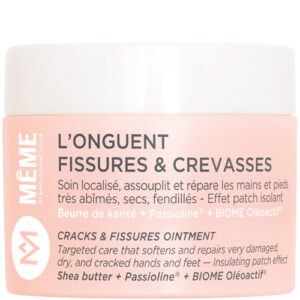 Encore une belle nouveauté du côté de chez Même. L’onguent fissures & crevasses est pensé pour les mains et pieds très secs, fragilisés ou sujets aux gerçures, notamment après un traitement contre le cancer. Sa formule sans eau, associe beurre de karité, paraffine végétale, et deux actifs végétaux (Biome oléoactif et Passioline) pour protéger, réparer et apaiser. Effet pansement.