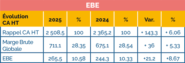 L’année 2025 a enregistré une évolution de l’activité de +6,06 %.