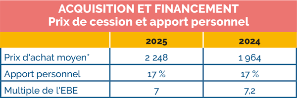 L’apport personnel de l’acquéreur est quant à lui resté stable, et représente 17 % du prix de vente. Il est significatif et reste indispensable à la pérennisation du projet de reprise et également à l’obtention du financement auprès des établissements bancaires.